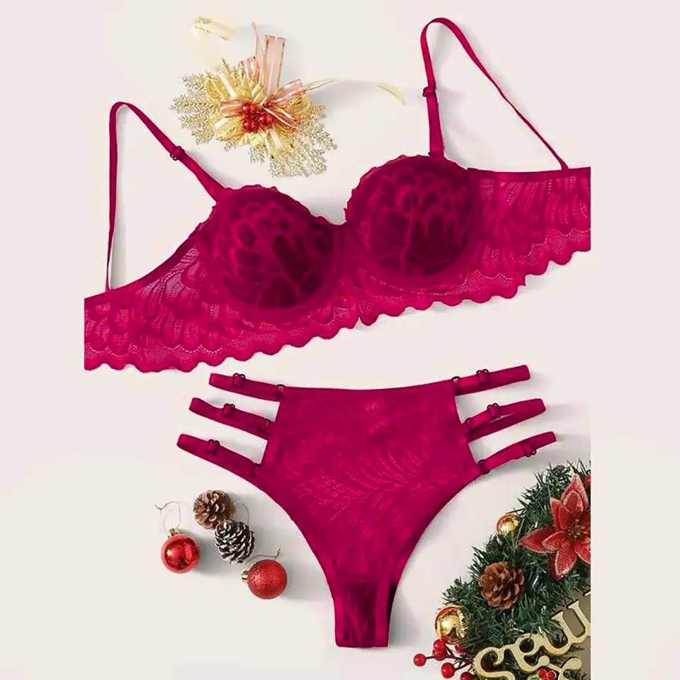 Lace Embroidered Lingerie Outfit Push Up Hollow Out Bras Set Sexy V-Neck Underwear Set Underwire Bralettes Set Lenceria Mujer